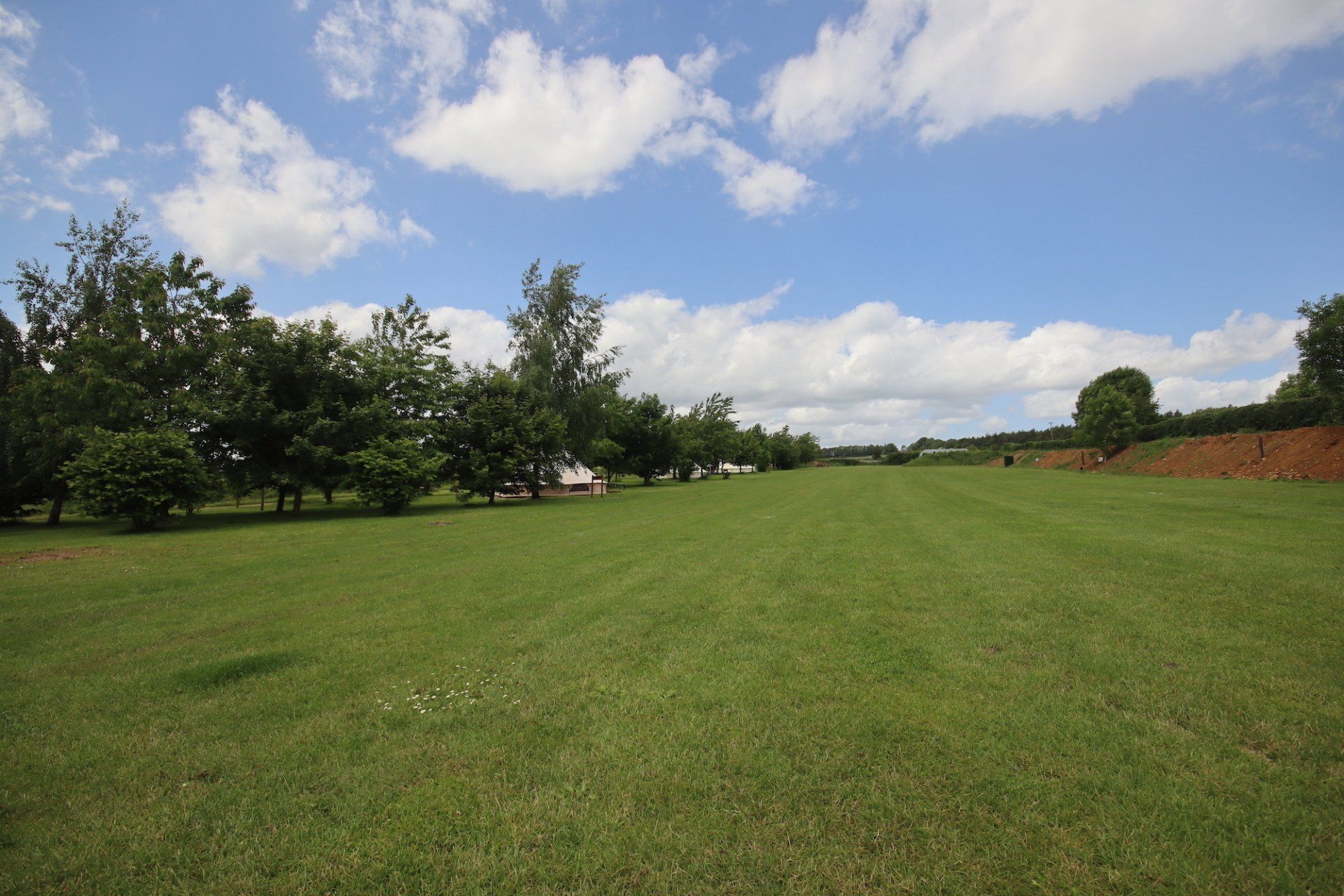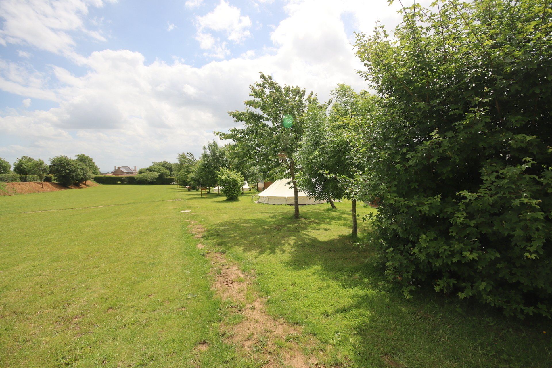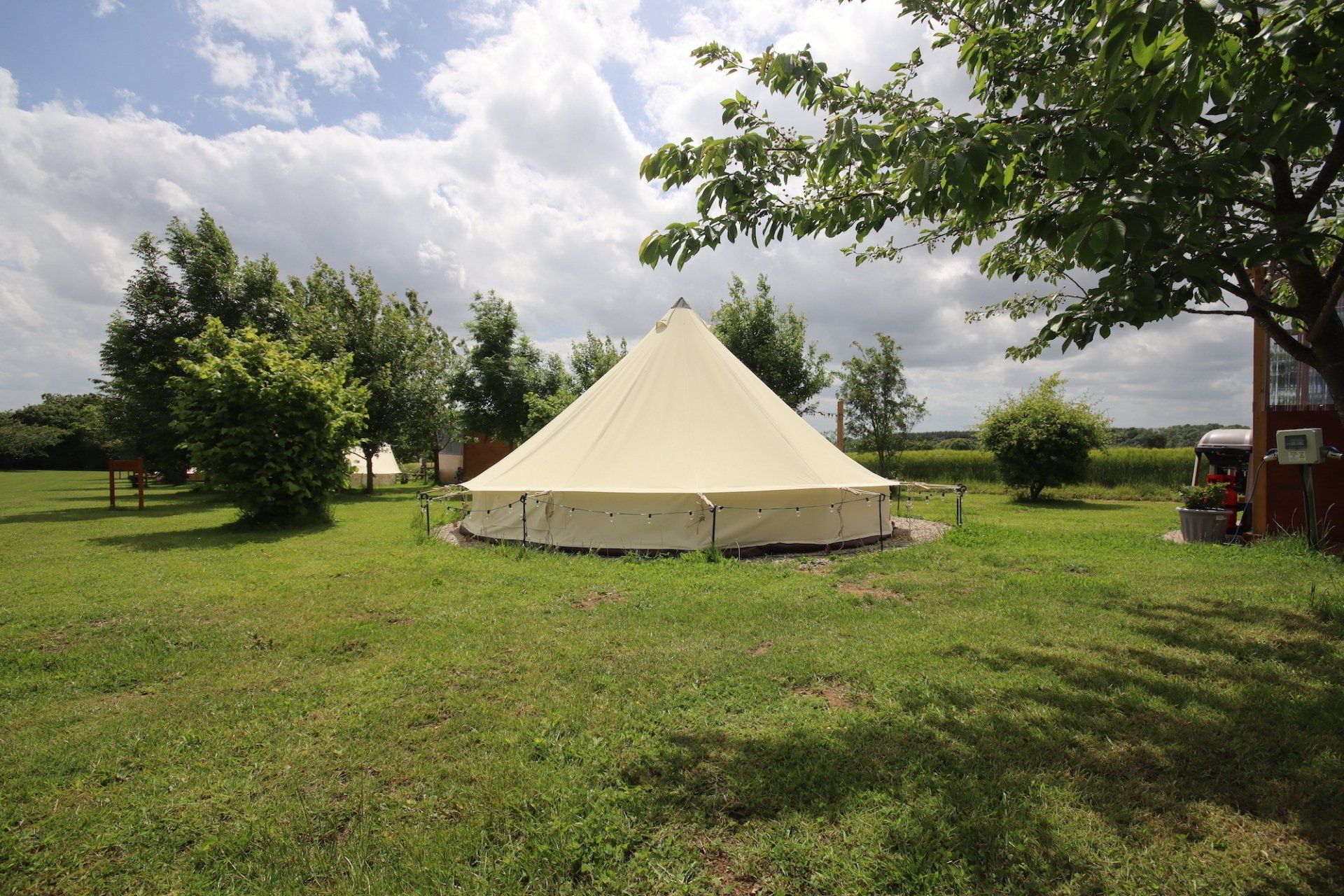 Back to nature with your very own pre-erected tent, nestled in a small copse of trees overlooking the farms fields on the edge of the park.